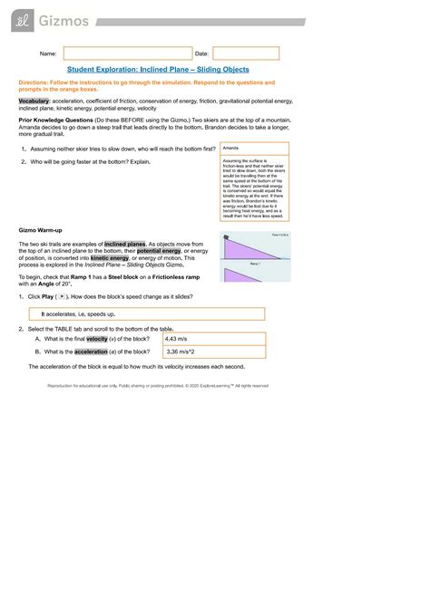 [UniqueID] - Download student exploration inclined plane sliding objects answer Reader